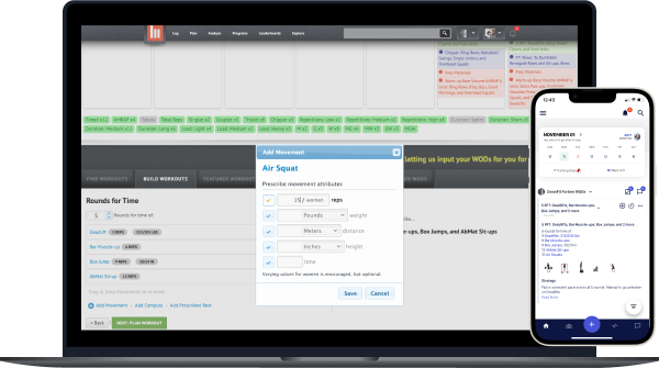 Use popular workout description templates as a baseline to quickly swapp in custom movements/reps/loads/etc.